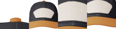 100% cotton twill front panels and bill; 100% polyester mesh back panels; 3¾"W x 2"H cotton twill patch for embellishment; Snapback closure;