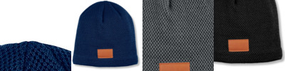 - 100% Acrylic rib knit beanie with PU faux leather patch on front cuff