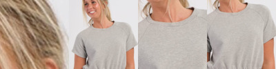 - Exposed raw edge at shoulder neck seam and sleeve cuffs