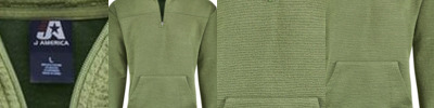 9.5-ounce, 80/20 ring spun US cotton/polyester 3-end fleece; 100% soft ring spun US cotton face for enhanced printability Garment-dyed for a lived-in feel Back neck patch for customization Self-fabric lined collar Twill zipper pull Rolled forward drop shoulder 1x1 rib knit cuffs and waistband Signature twill label Relaxed fit, side seamed The garment-dyeing process infuses each garment with unique character. Please allow for slight color variation in production and washing. Special consideration must also be taken when printing white ink on garment-dyed cotton. **